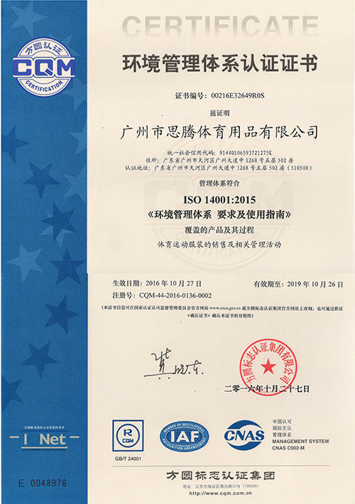 【杏耀平台运动服团购杏耀平台环境体系认证证书