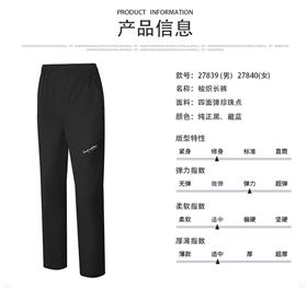 杏耀针织速干四面弹长裤27783/27784针织运动长裤27793(男)/27794(女)